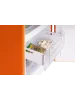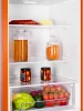 Устройство объемом 240 литров вмещает продукты для всей семьи. Модель оранжевого матового цвета дополнена интегрированными горизонтальными ручками, которые не нарушают общую эстетику и придают устройству аккуратный, современный облик.