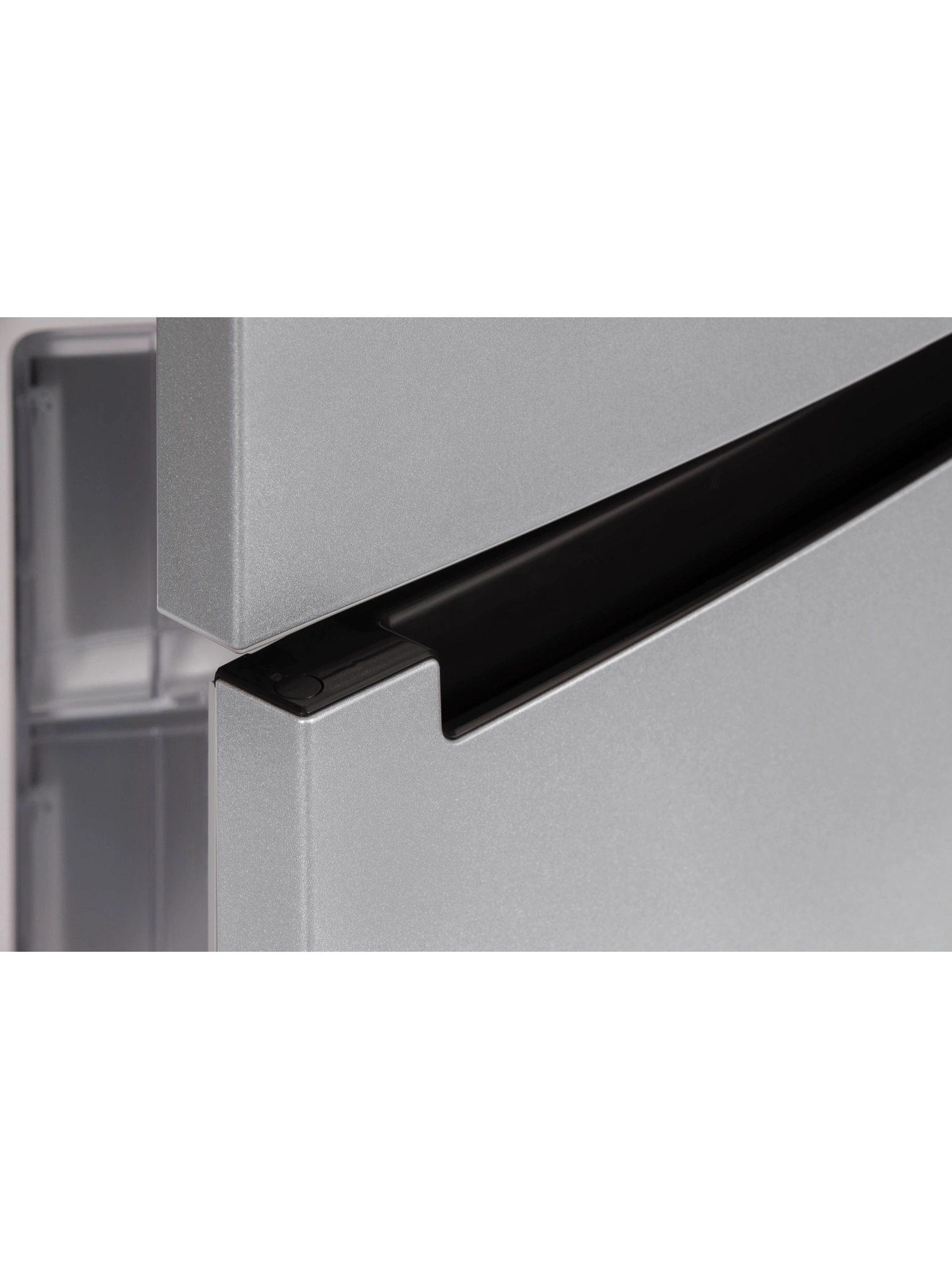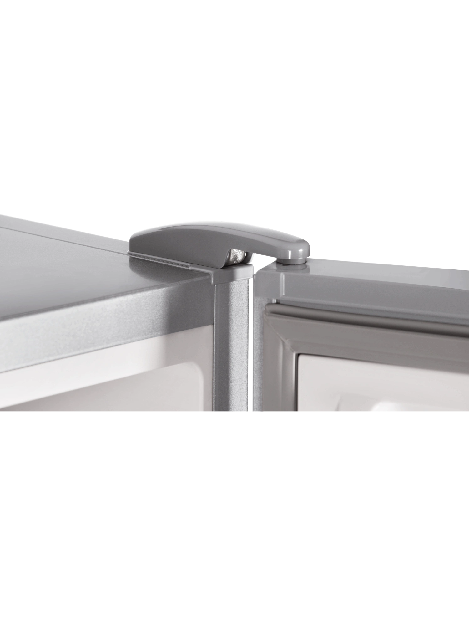 Посуда холодильника оформлена с эстетической проработкой — серебристый отлив и аккуратная инфографика придают устройству современный и аккуратный вид.