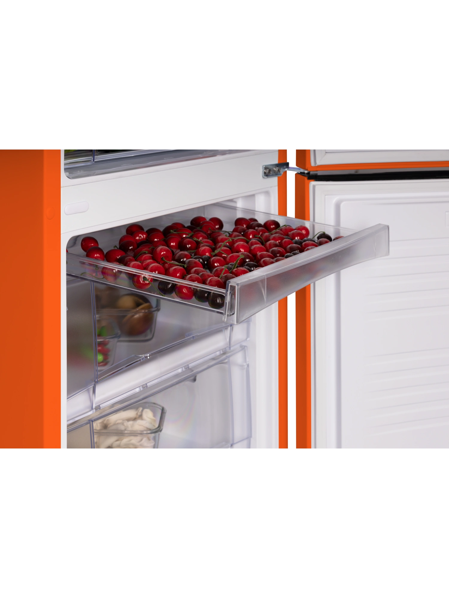 Модель с общим объемом 320 литров и нижним расположением морозильной камеры выполнена в красном цвете. Классический корпус с горизонтальными интегрированными ручками впишется в интерьер любой кухни — от минимализма до уютной классики.