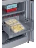 Внутреннее пространство продумано для максимального удобства. Гладкие ламинированные стенки с антибактериальным покрытием помогают поддерживать чистоту. LED-подсветка мягко освещает содержимое, не нагревая камеру. Пять полок из закалённого стекла регулируются по высоте и выдерживают значительную нагрузку. Вместительный ящик сохраняет свежесть овощей и фруктов. Четыре дверные полки позволяют удобно разместить напитки и мелкие продукты. В морозильной камере предусмотрено 3 прозрачных ящика, два из которых увеличенного размера, а также отдельный лоток для заморозки ягод.