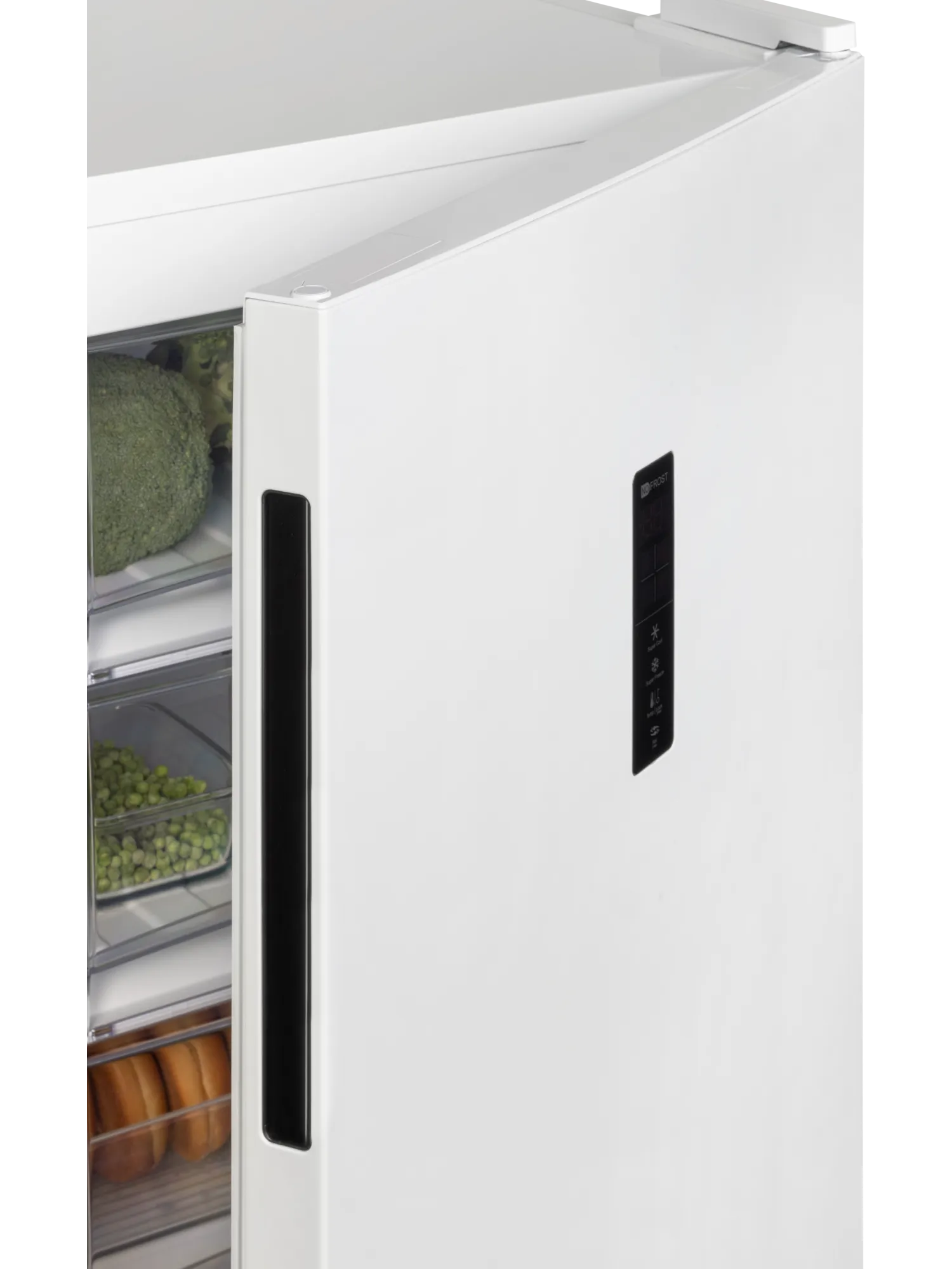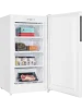 Морозильник белого цвета с черной интегрированной ручкой и продуманным внутренним пространством станет стильным и технологичным акцентом на вашей кухне. Высота устройства 109 см. Для комфортного открытия и установки морозильника в удобном месте — дверь можно перенавесить с правой стороны на левую.