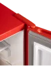 Корпус холодильника в красном цвете выглядит стильно и привлекательно, а горизонтальные интегрированные ручки создают комфорт пользования моделью.