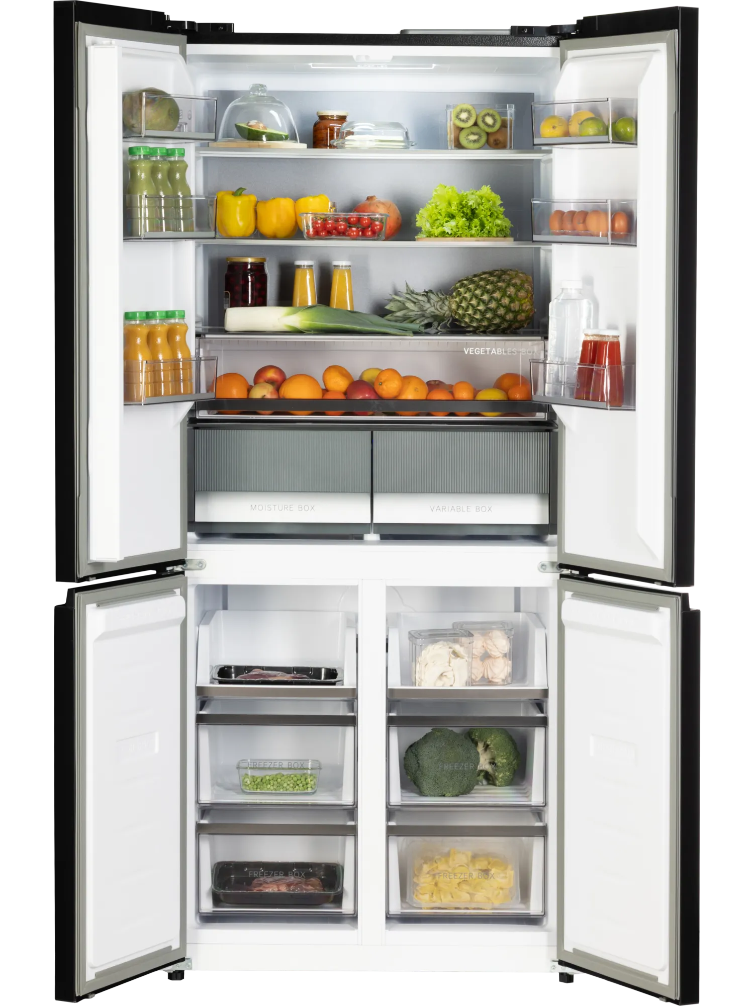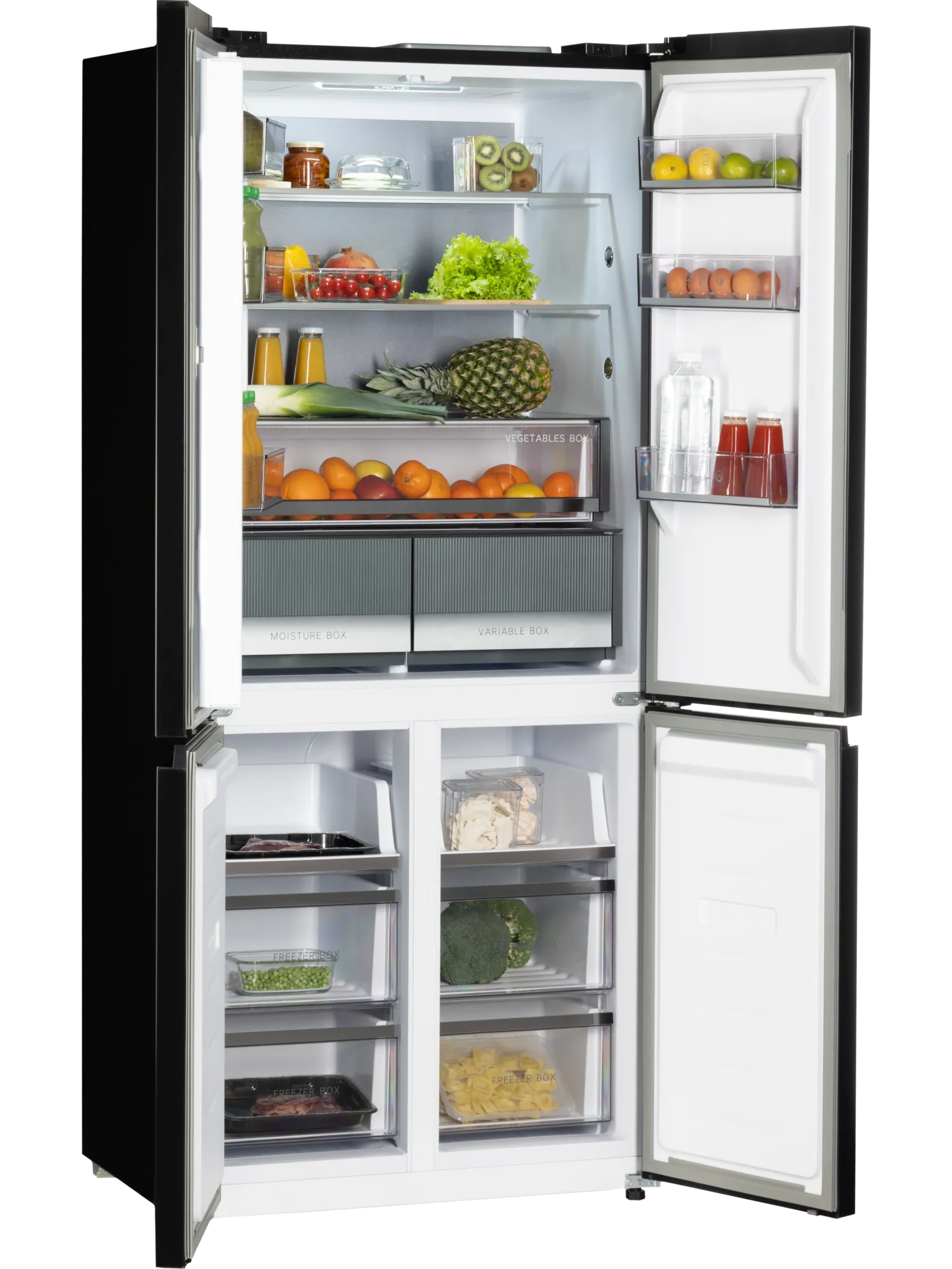 Общий объем холодильника составляет 466 литров. Три отделения и функциональная зона позволяют хранить продукты с максимальной свободой: