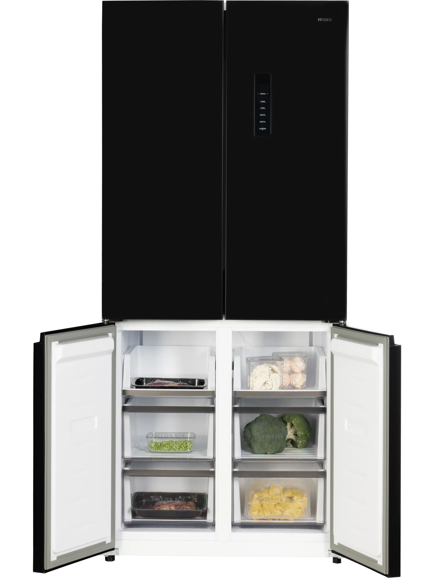 Четырехдверный инверторный холодильник NORD i-RFQ 510 Xd с фасадом цвета темной нержавеющей стали создан для современных кухонь. Благодаря системе Slot-in (4 мм) модель можно использовать как отдельностоящую технику или встроить в кухонный гарнитур без зазоров и ограничений.