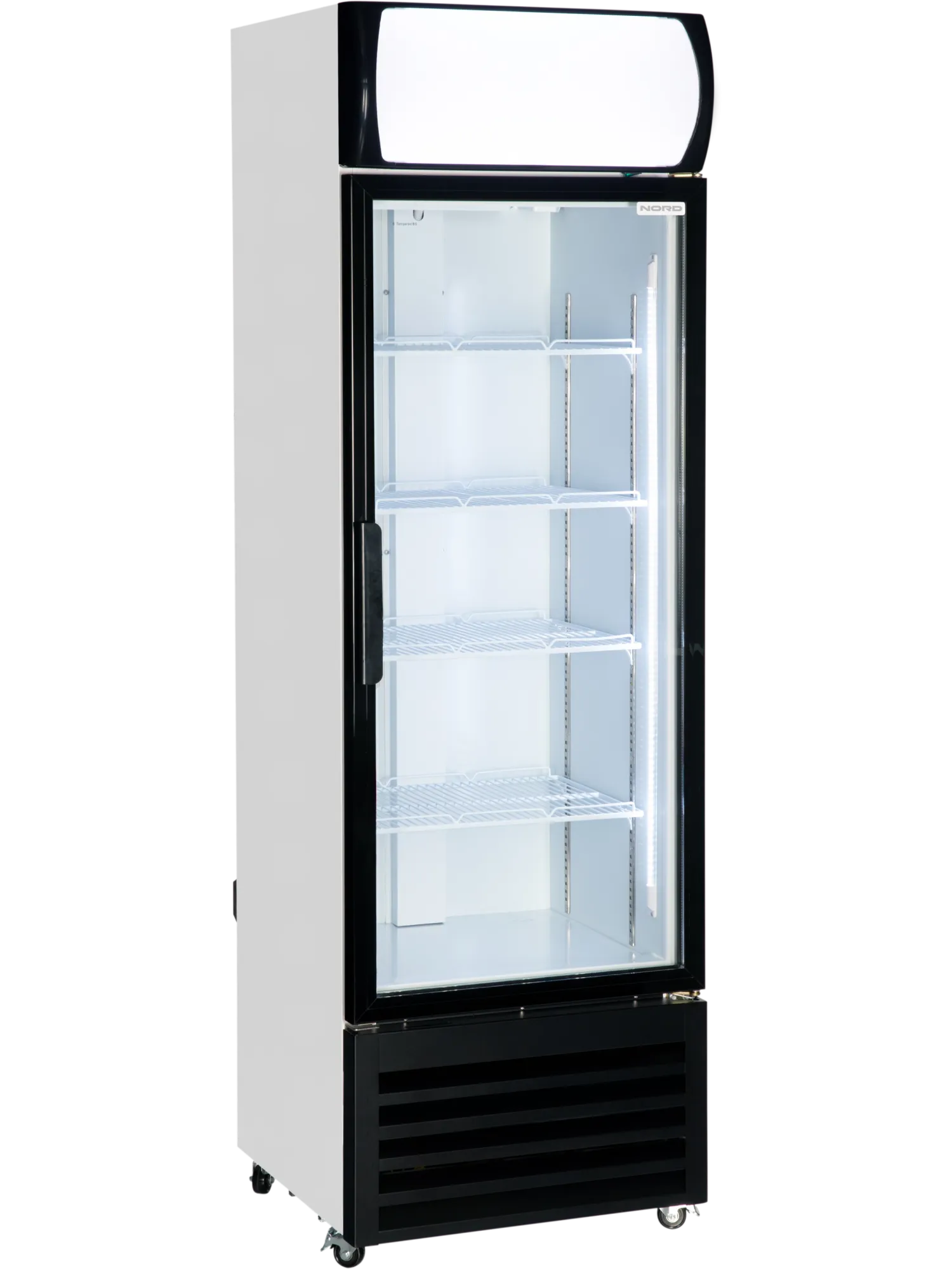 Яркое светодиодное освещение внутри холодильного шкафа и в лайтбоксе, расположенном в верхней его части, обеспечивает хорошую видимость и создает привлекательный эффект. Лайтбокс служит в качестве вывески или рекламного блока.
