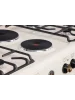 Рабочая поверхность шириной 90 см объединяет четыре газовые и две электрические конфорки, позволяя удобно готовить сразу несколько блюд. Электрический блок включает экспресс-конфорку 1,5 кВт (диаметр 145 мм) и большую электрическую конфорку 1,5 кВт (диаметр 180 мм) — оптимально для разной посуды и быстрых режимов нагрева. Автоподжиг делает использование плиты удобным и безопасным — пламя загорается от поворота регулятора, без спичек и лишних кнопок. Чугунные решётки отличаются высокой прочностью и устойчивостью, обеспечивая эффективный нагрев и комфорт при готовке.
