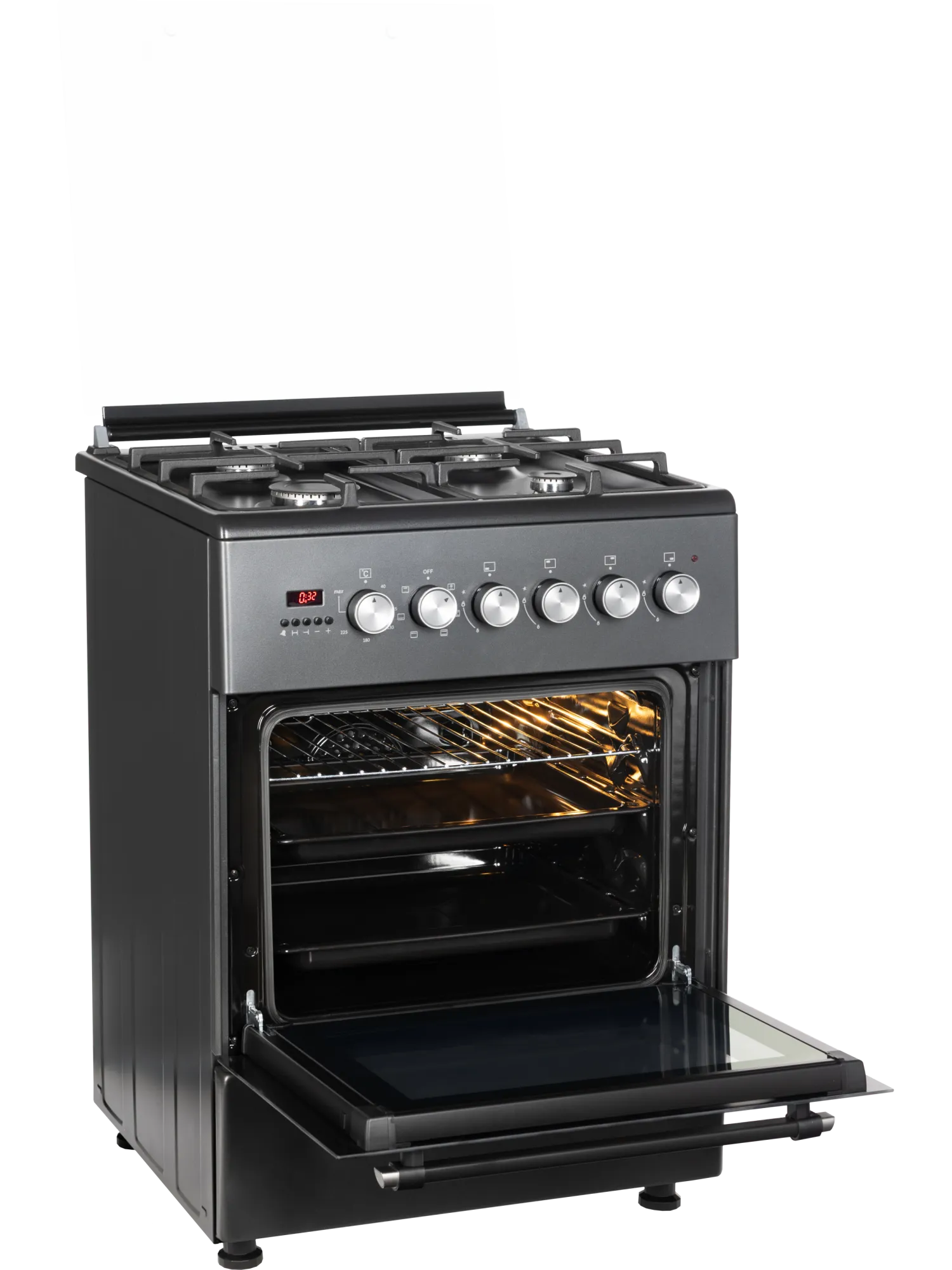 Газовый духовой шкаф объемом 110 литров поддерживает 2 режима приготовления и оснащена газовым грилем, что позволяет готовить еще больше аппетитных блюд. Для удобства и безопасности предусмотрены механический таймер, съемное внутреннее стекло дверцы со встроенным термометром, раздельный контроль горелок духовки и подсветка. Нижнее отделение для хранения посуды помогает поддерживать порядок на кухне и держать необходимые аксессуары под рукой.
