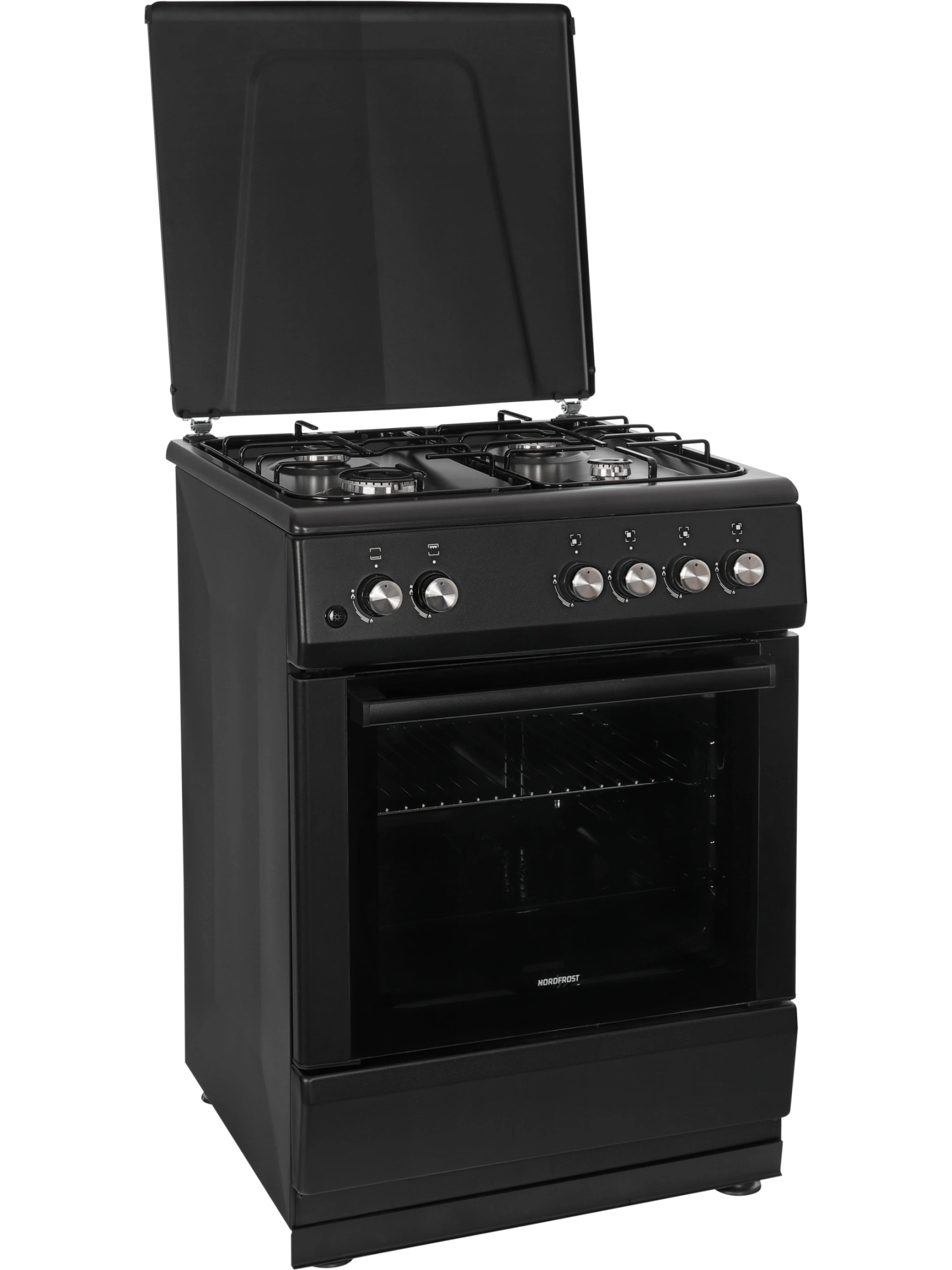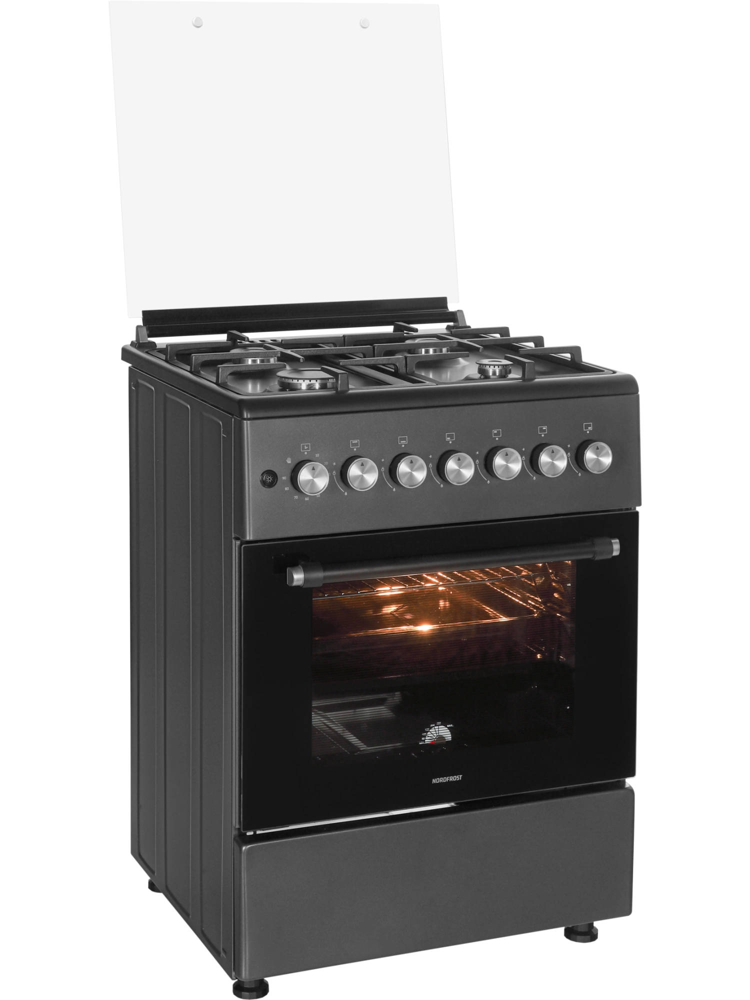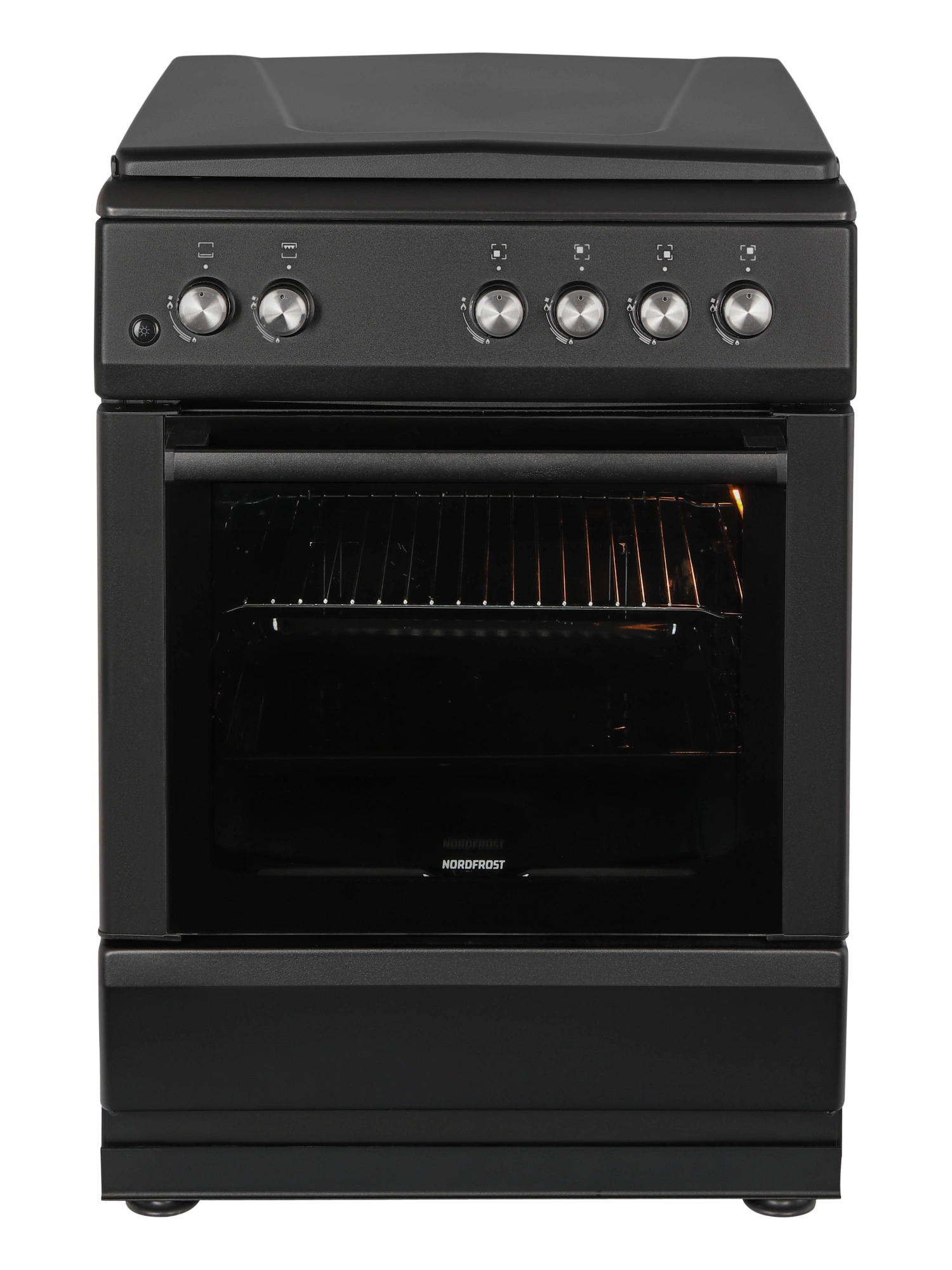 В нижней части плиты NORDFROST расположен вместительный ящик с откидной дверцей, в котором можно хранить посуду и кухонный инвентарь.