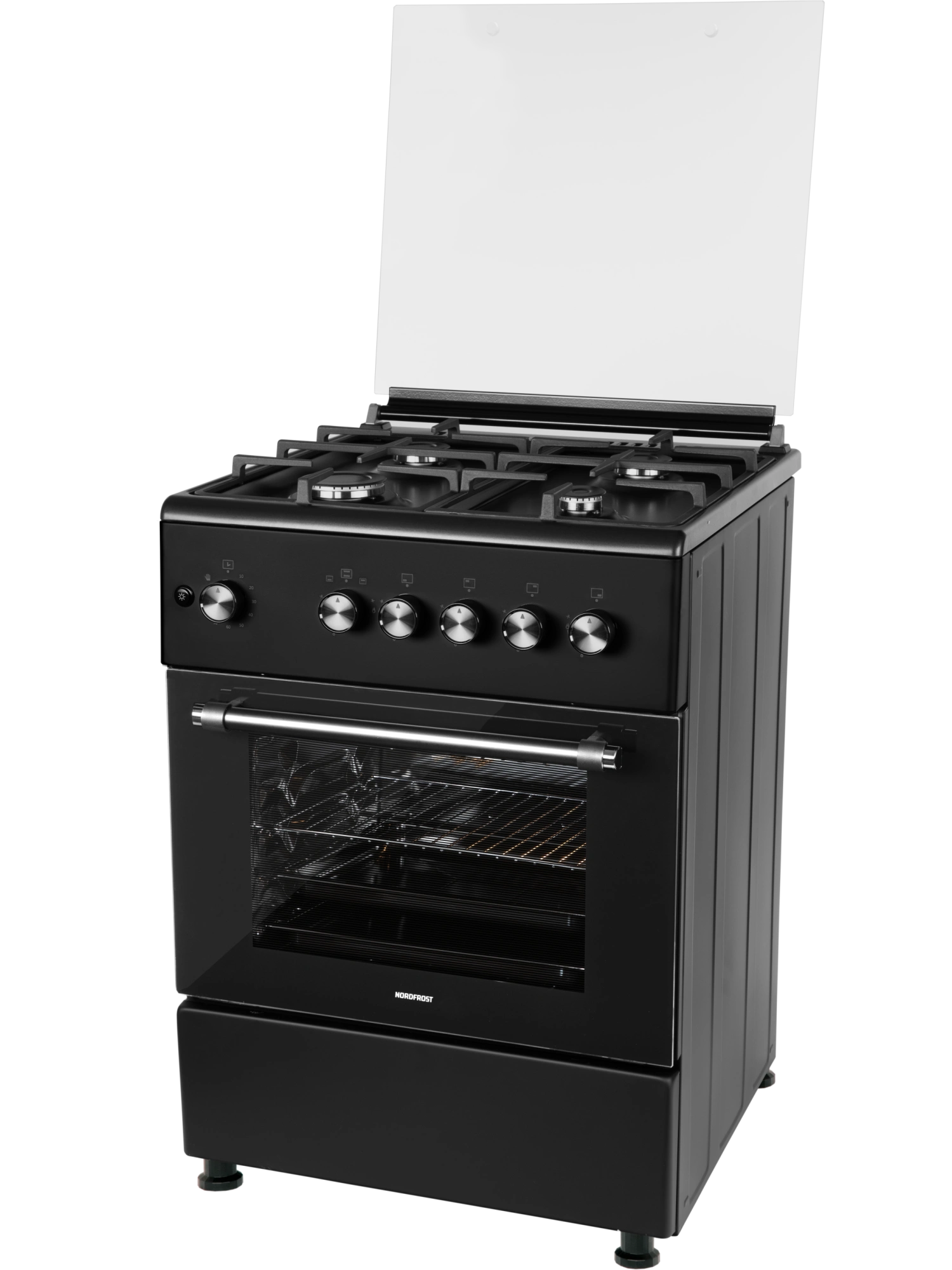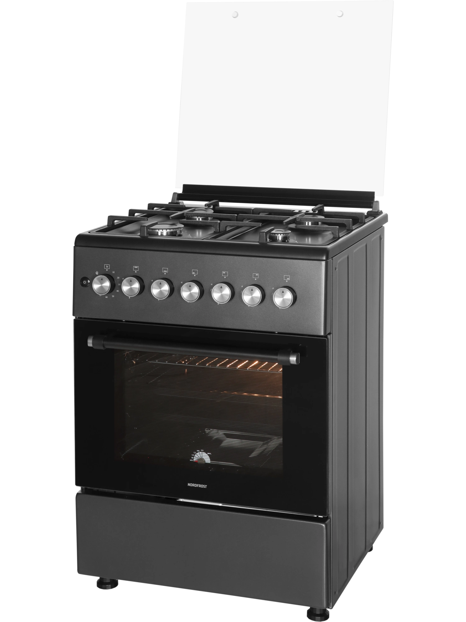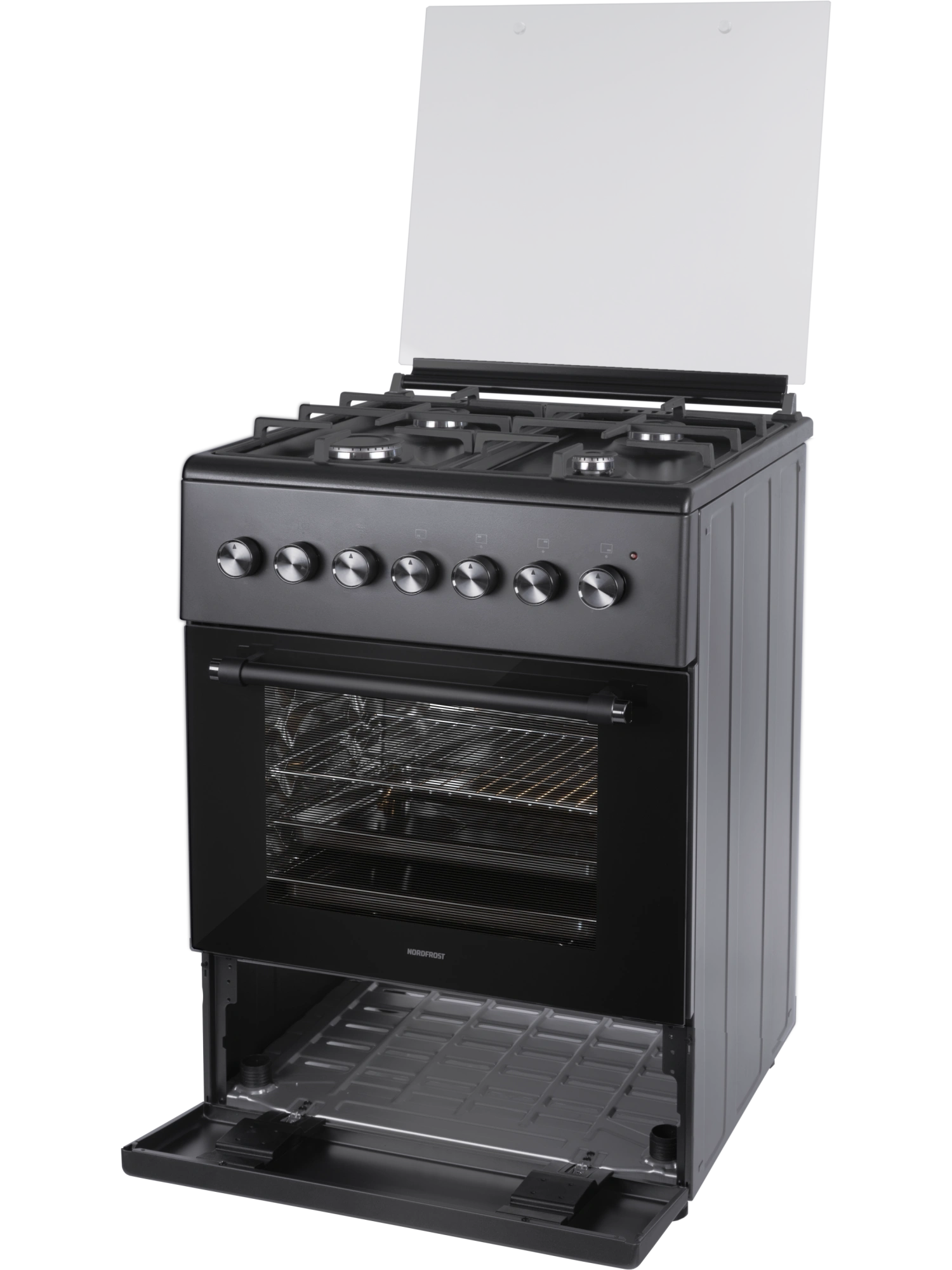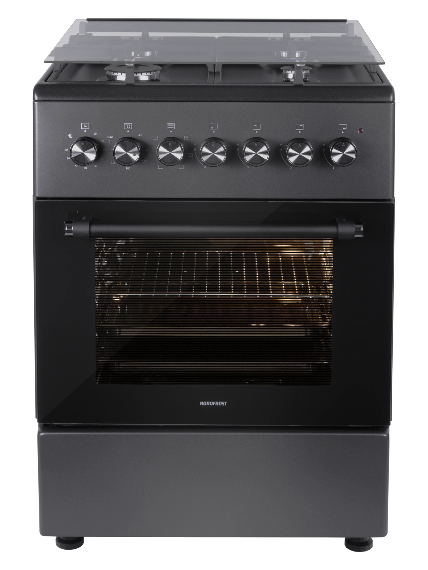 В нижней части плиты NORDFROST расположен вместительный ящик с откидной дверцей, в котором можно хранить посуду и кухонный инвентарь.