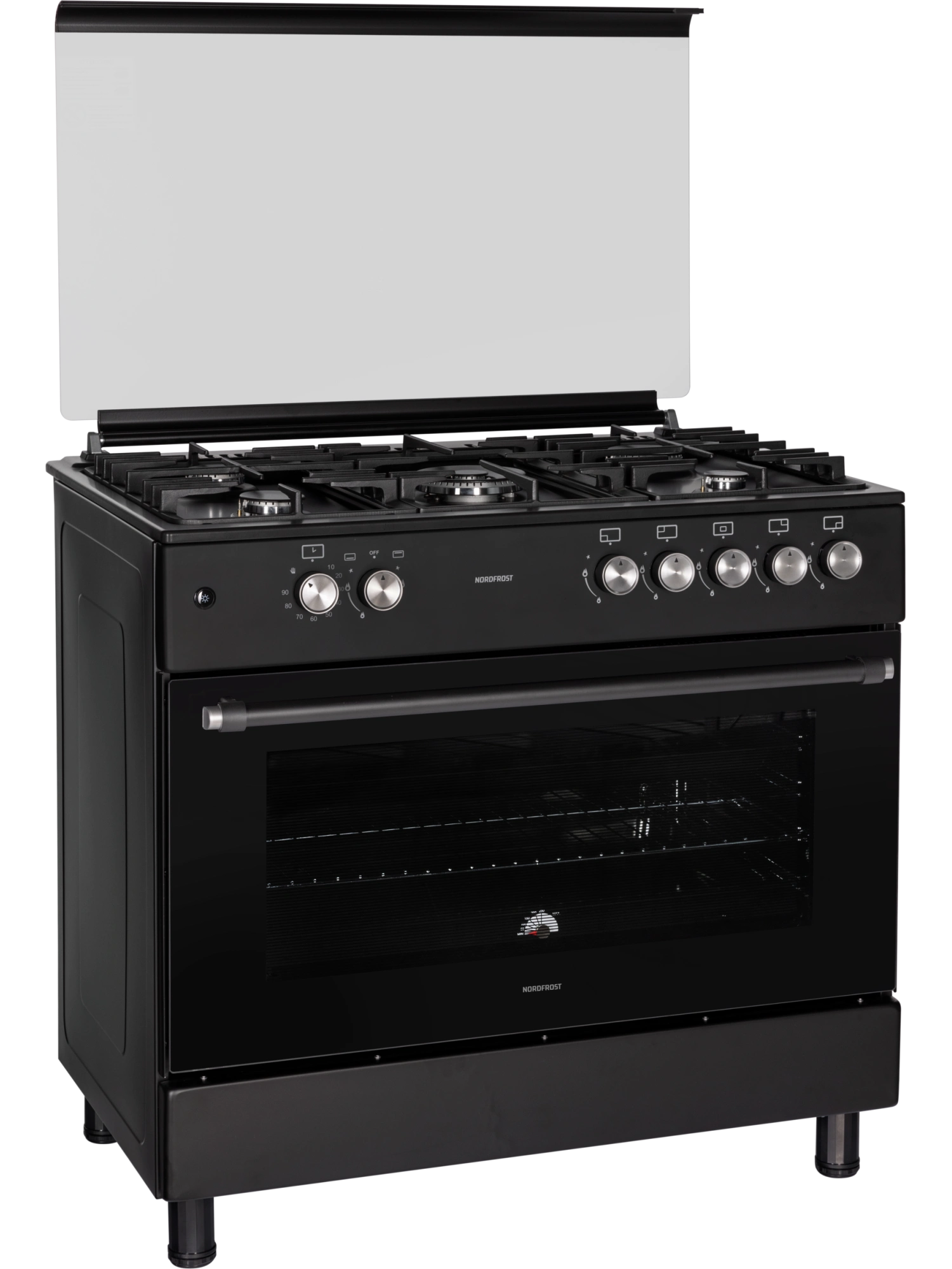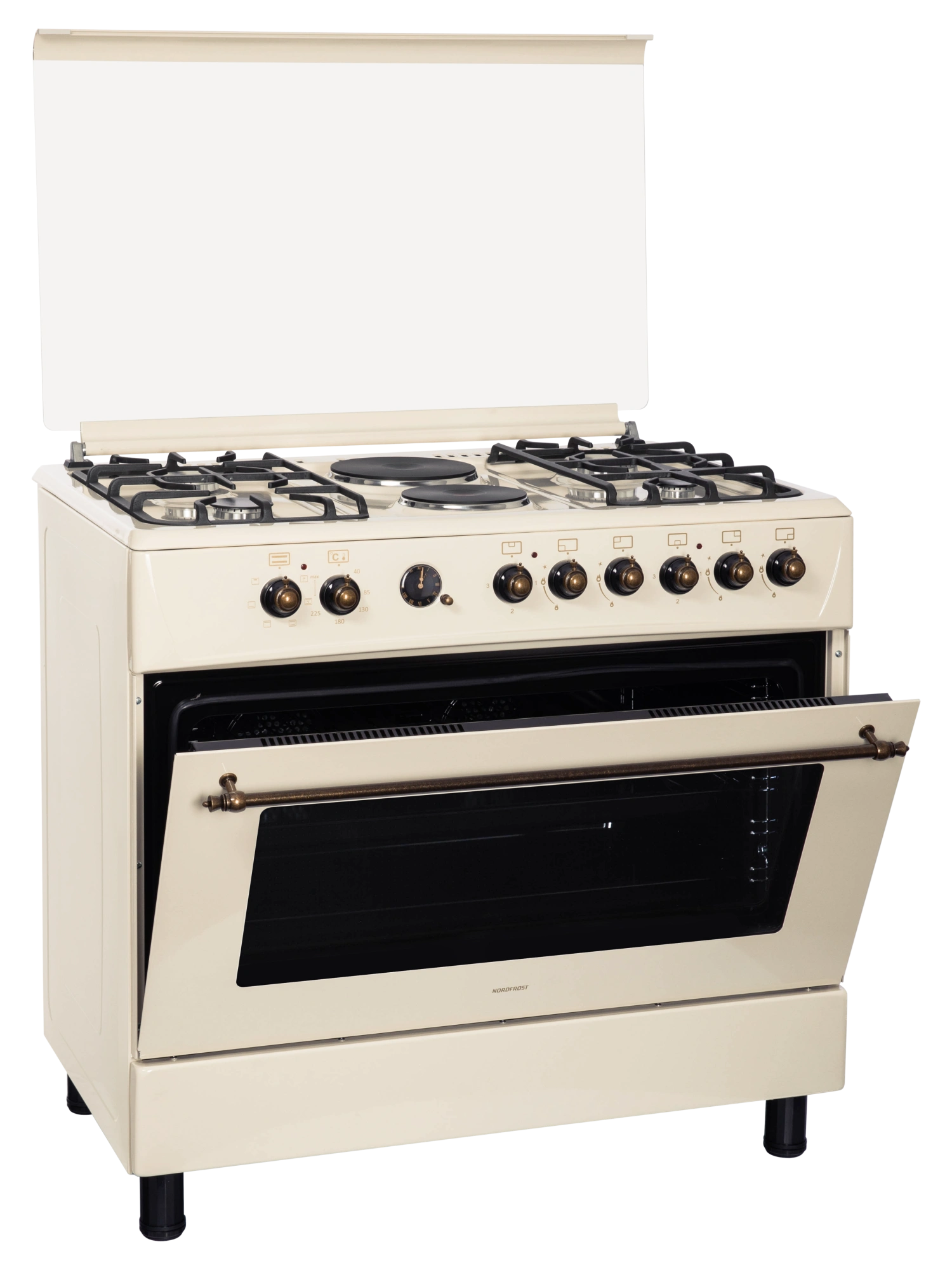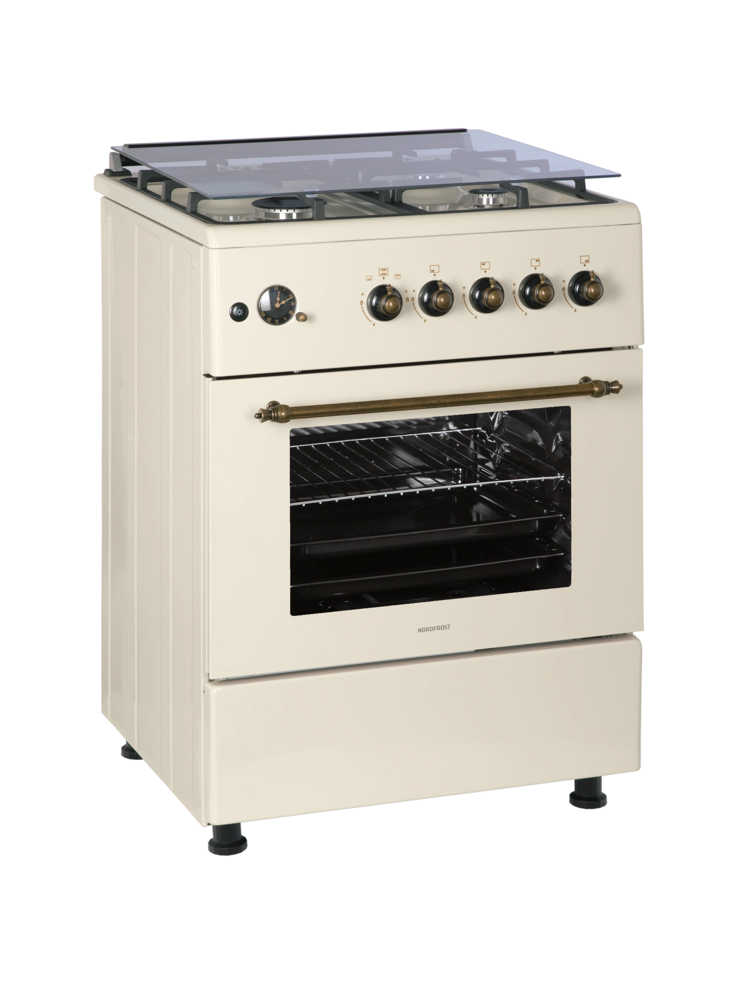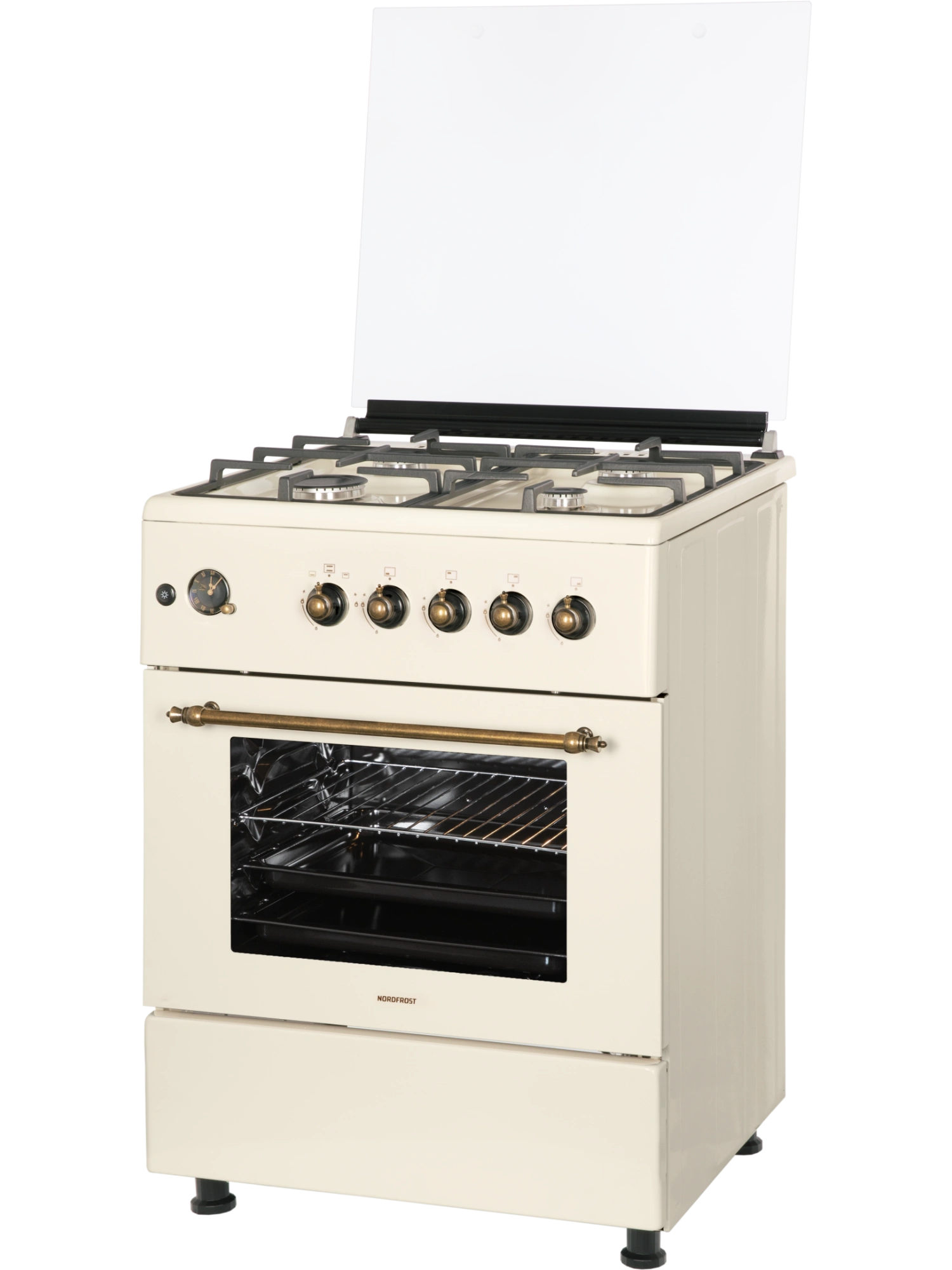 Выполненная в ретро стиле широкая газовая плита NORDFROST GG 9062 YR имеет объем духовки 110 литров, оснащена 5 конфорками с функцией авторозжига.