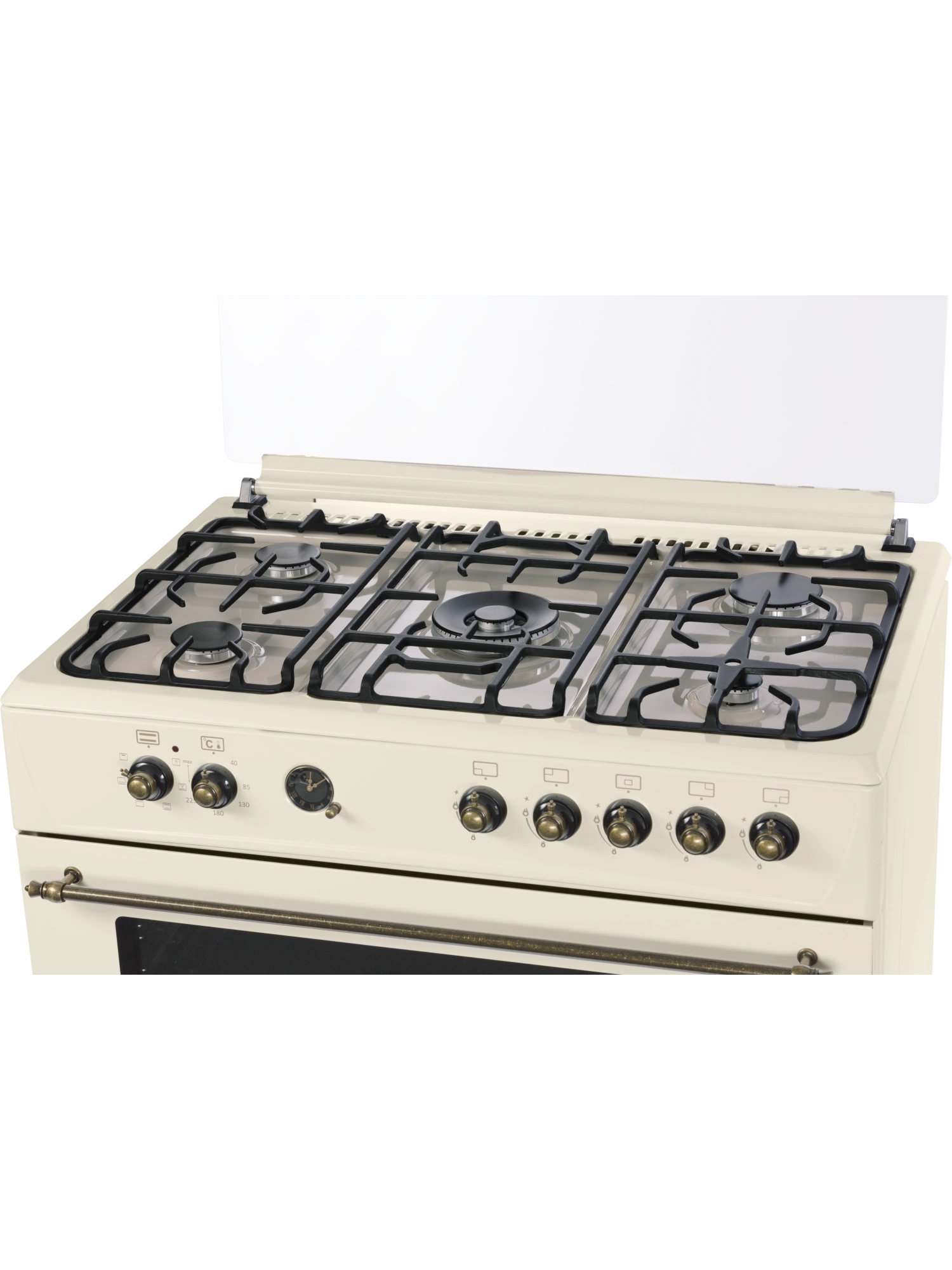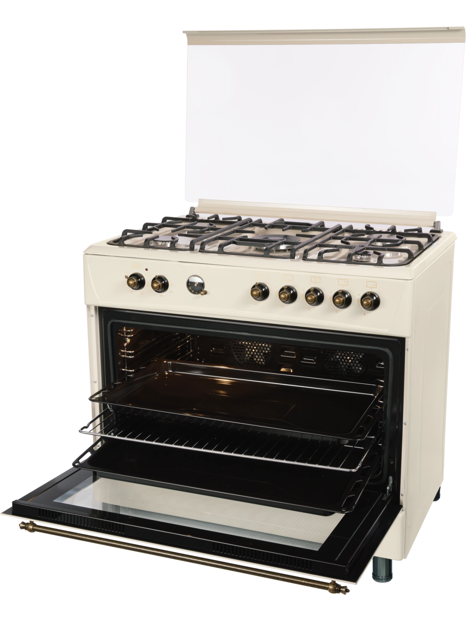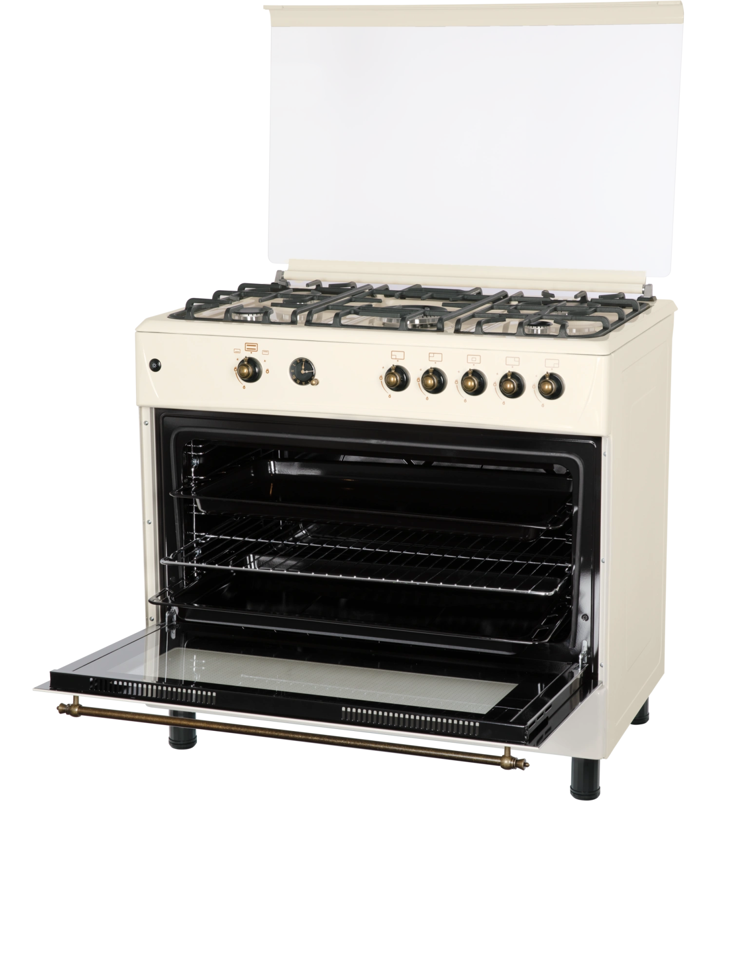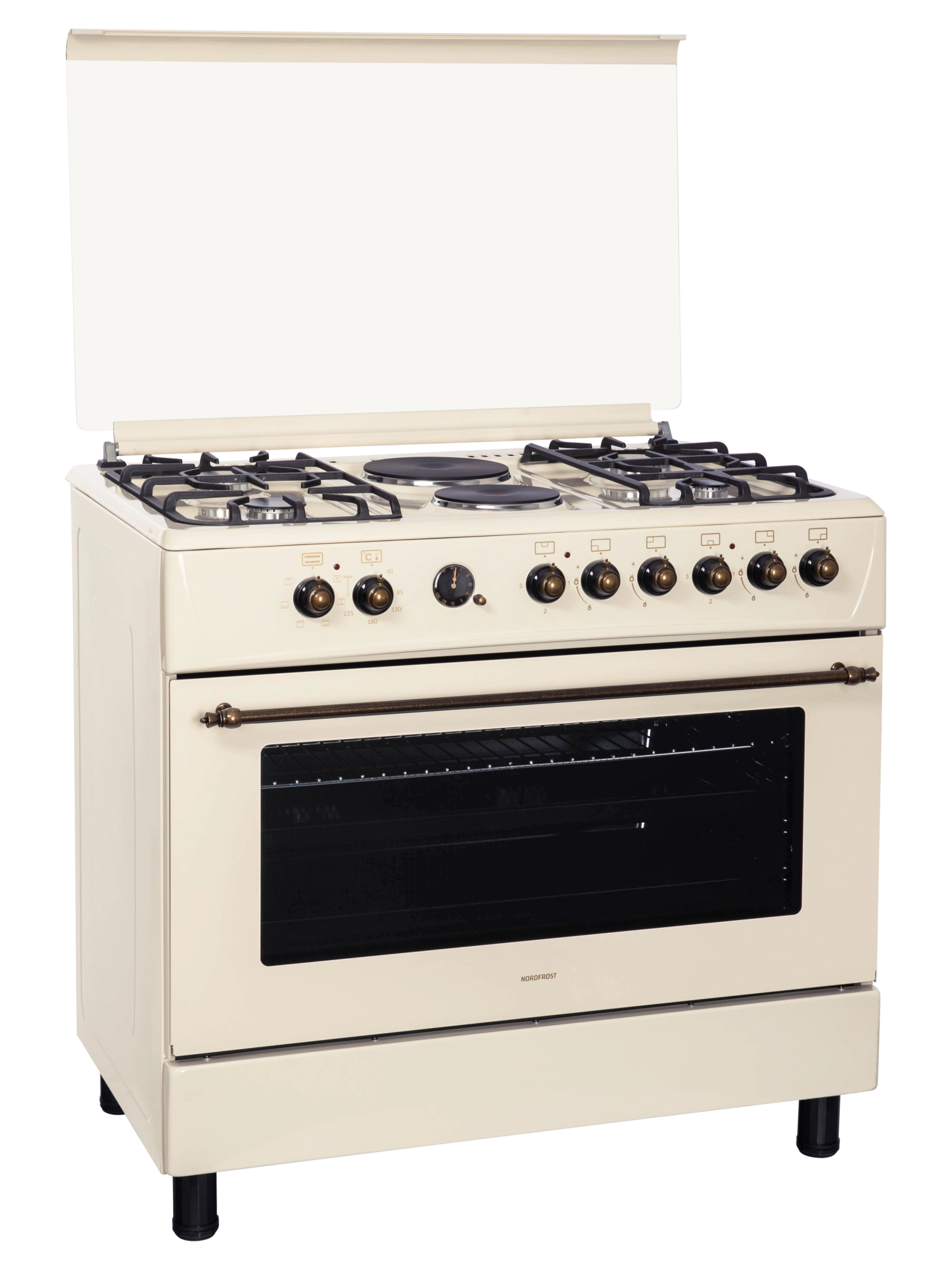 Выполненная в ретро стиле широкая газовая плита NORDFROST GG 9062 YR имеет объем духовки 110 литров, оснащена 5 конфорками с функцией авторозжига.