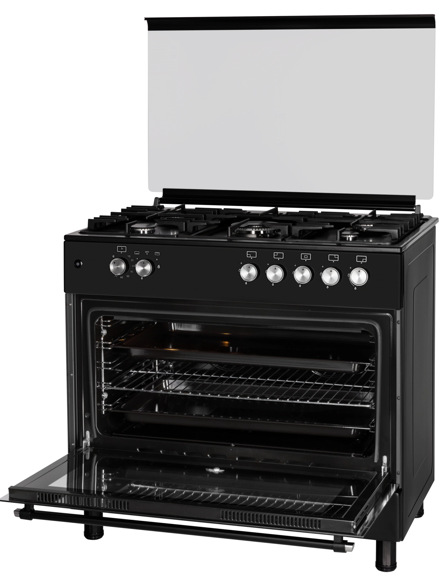 Плита шириной 90 см – оптимальный вариант для большой семьи, где нужно готовить несколько блюд одновременно.