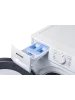 Корпус стиральной машины, выполненный в белом цвете, создает эффектный контраст с черным люком. Такое классическое сочетание цветов в модели подходит к любому интерьеру кухни или прачечной комнаты.