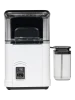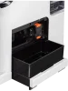 Изысканная кофемашина выполнена в белом цвете с черными деталями.