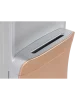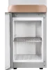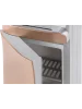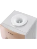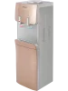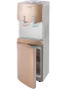 В нижней части корпуса встроен шкаф-кабинет вместимостью 14 л, его можно использовать для хранения чайных принадлежностей и посуды. На фронтальной панели световые индикаторы сообщают о текущем режиме работы устройства. При случайном переливе воды, вся жидкость скапливается в лотке каплесборника. Защита от детей, реализованная дополнительной кнопкой, делает диспенсер для воды максимально безопасным для использования в общественных местах. Модель выполнена в золотистом цвете и эффектном дизайне.