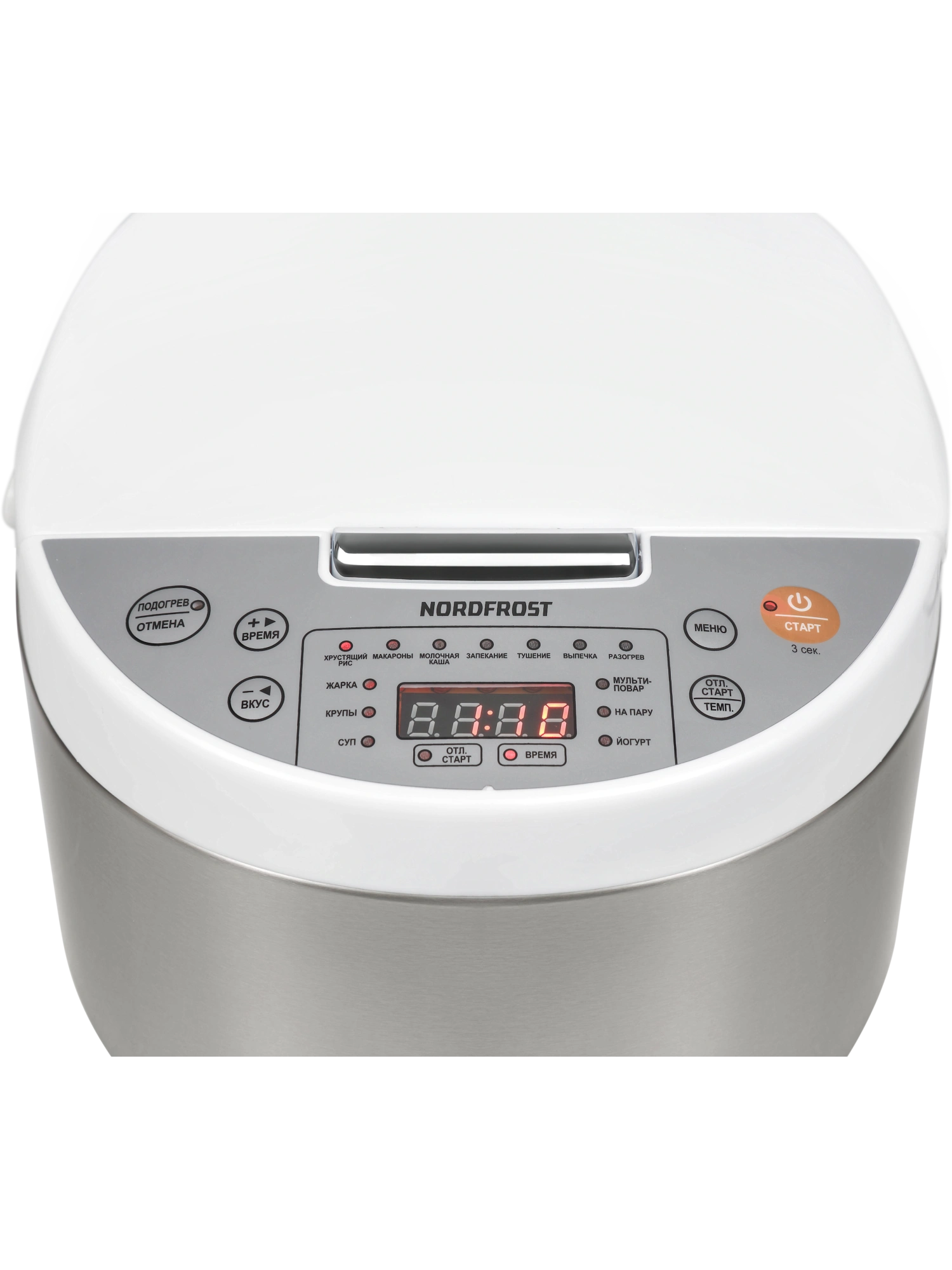 Панель управления прибора представлена кнопками, индикацией программ и дисплеем, на котором отображаются настройки процесса приготовления.