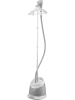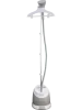 Отпариватель выполнен в современном дизайне и сером цвете.