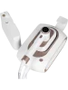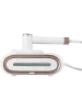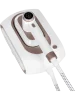 Модель имеет стильный и лаконичный дизайн. Рукоять эргономичной формы обеспечивает удобство при использовании прибора. Отпариватель отличает эстетичное цветовое решение — сочетание белого цвета и «розового золота».