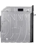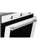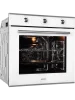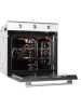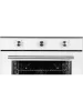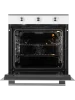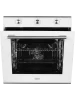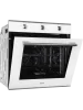 Модель шириной 59,5 см выполнена в современном стиле, имеет фасад из закалённого стекла белого цвета. Дверца духового шкафа оснащена тройным съёмным стеклом, что позволяет легко очистить её от жира и копоти. Внутреннее покрытие модели — эмаль лёгкой очистки.