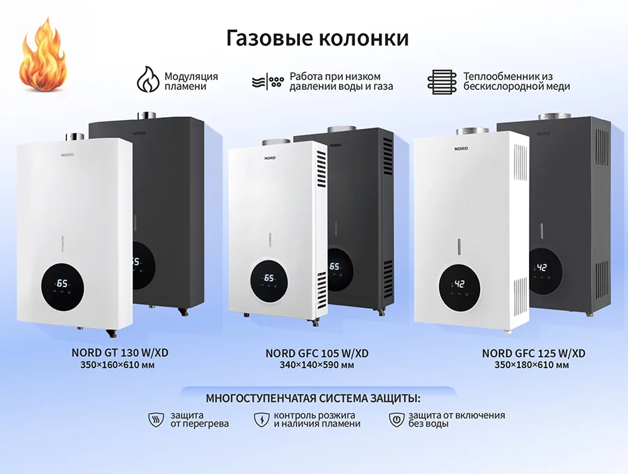 Встречайте масштабное обновление в категории водонагревательной техники NORD. Представляем модели GFC 105, GFC 125 и турбированную серию GT 130.