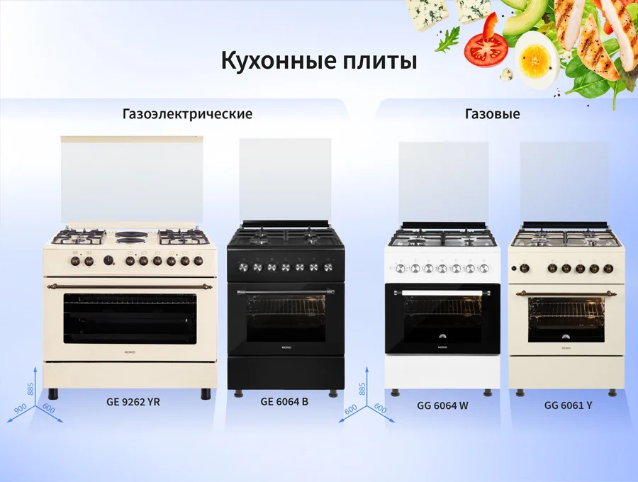 Удобные конфорки, прочные чугунные решётки и практичные духовки с подсветкой и таймером делают процесс приготовления по-настоящему комфортным.